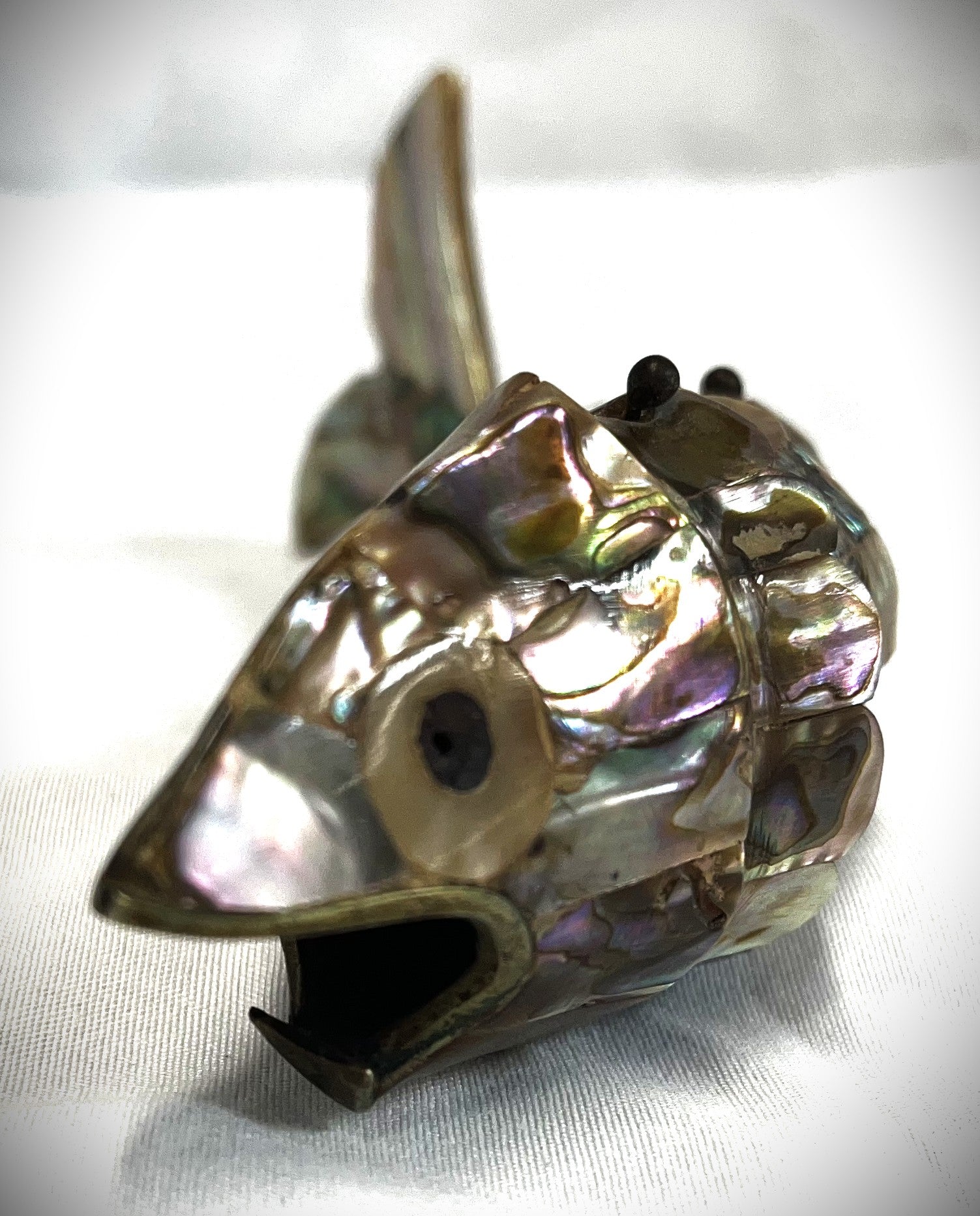 Vintage Abalone Fish Bottle Opener, Mother of Pearl Articulated Fish ornament